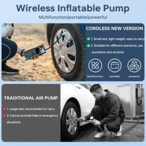 The Portable Air Compressor Tire Inflator is designed to make tire inflation easier than ever. With a maximum pressure of 150PSI, this car tire pump ensures that you can inflate your tires quickly and efficiently, no matter where you are. Whether you’re at home or on the road, this compact device is a must-have for every vehicle owner.